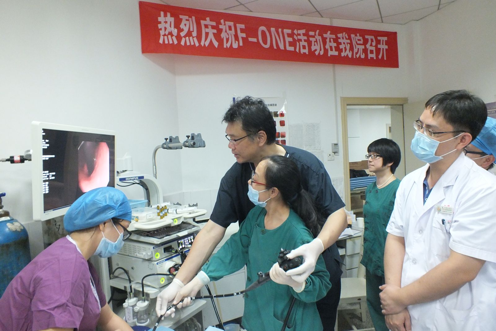 2015年11月5日,国际著名消化内镜专家、日本菅间纪念医院傅光义教授来我院进行学术交流及“手把手”内镜操作演示。我院消化内科全体医护人员参加了此次交流活动。