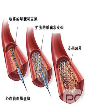 ![]() | → | 最后,在冠脉病变处,对其扩充、植入支架,使冠脉管腔扩大,从而改善心脏血流。 |