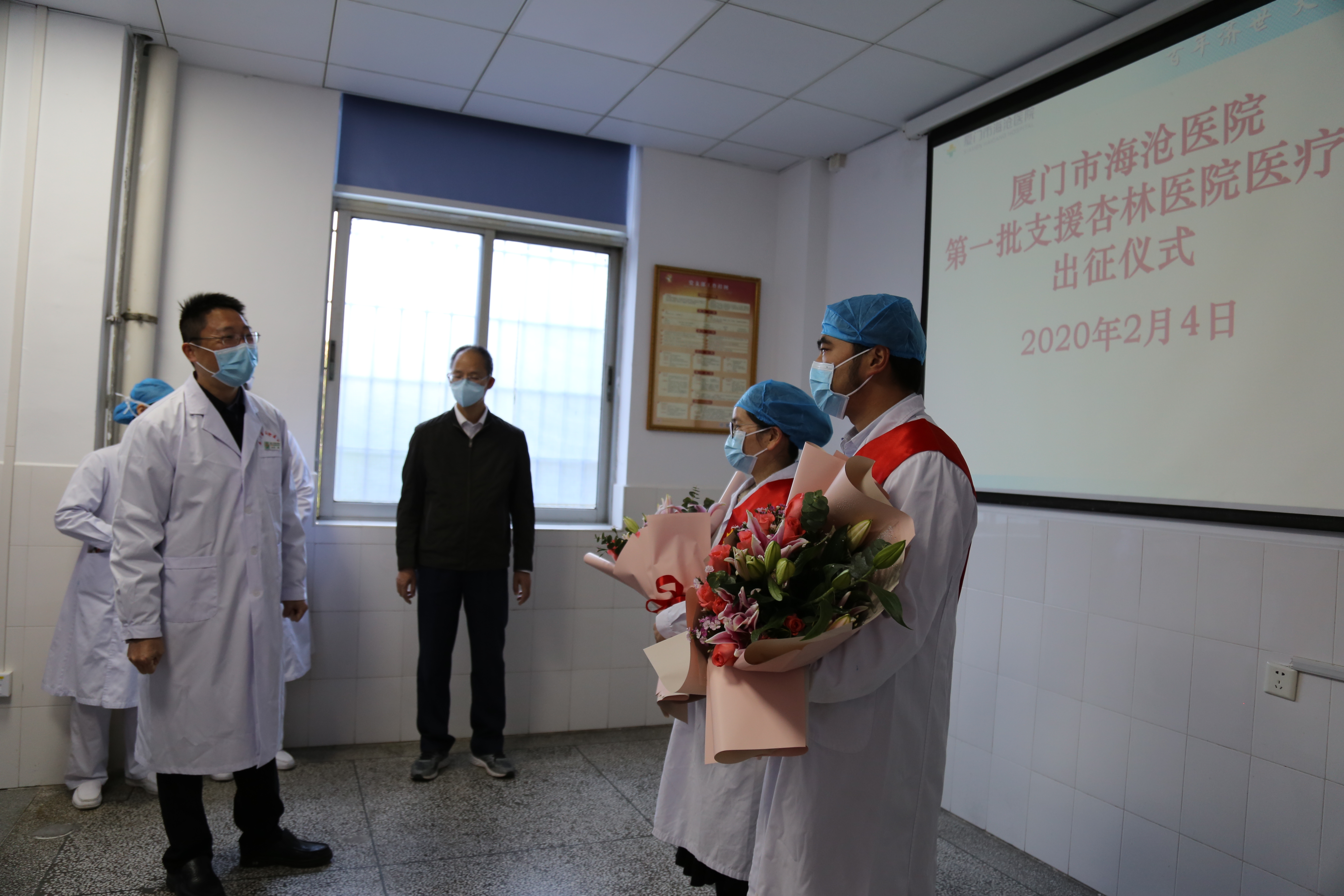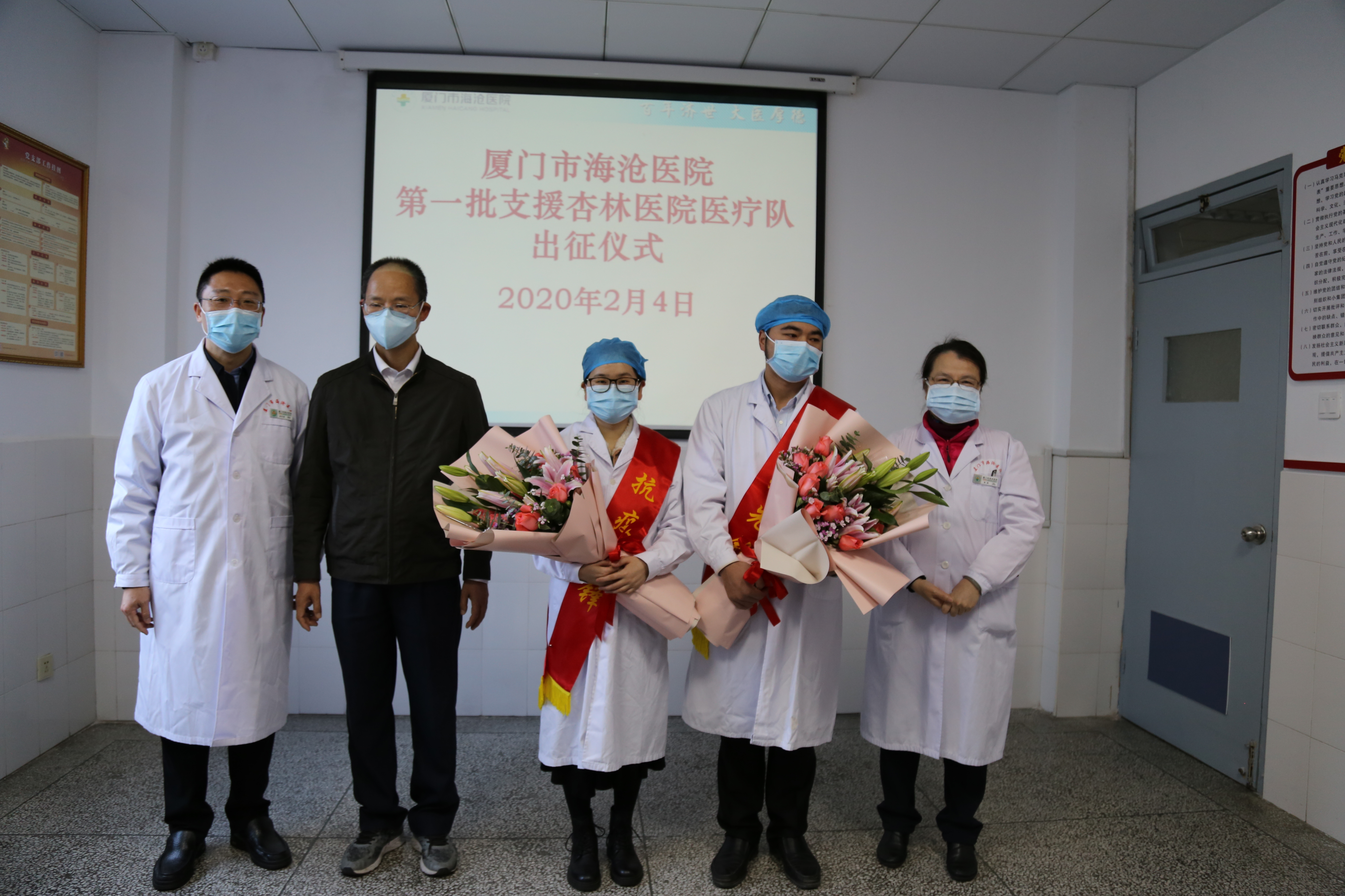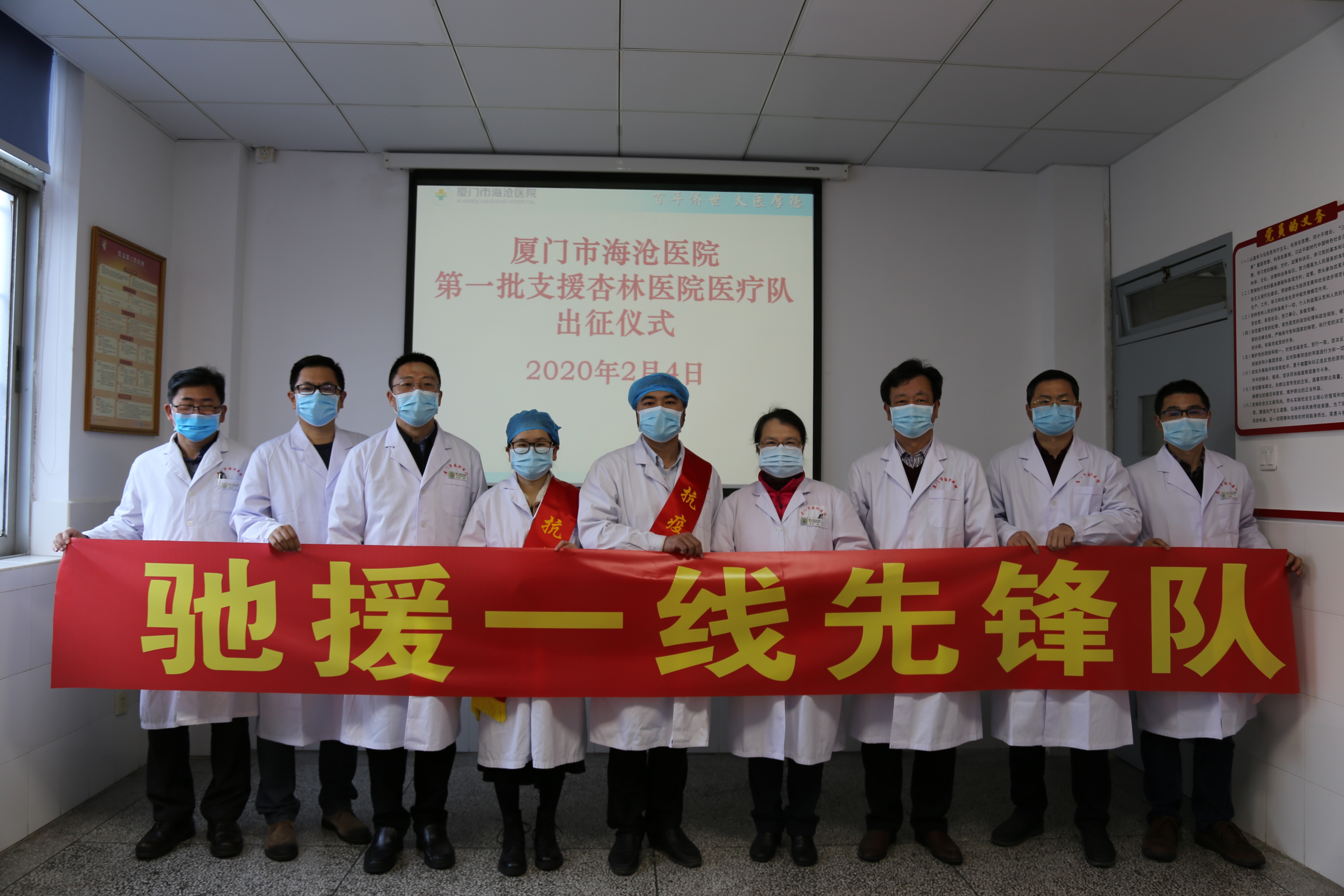 疫情下,市海沧医院两位护理人果断报名,主动请缨,前往厦门市定点杏林医院支援,用实际行动,实践南丁格尔精神。2月5日,医院举办第一批支援杏林医院医疗队出征仪式,海沧区政府苏亮文副区长与医院党政领导班子成员、两位出征护理人员科室领导等一齐为他们送行。医院党委书记兼执行院长叮嘱:“去了一线,一定要做好防护,家里有任何困难,随时向医院反馈,我们一定全力解决,你们就安心作战。”